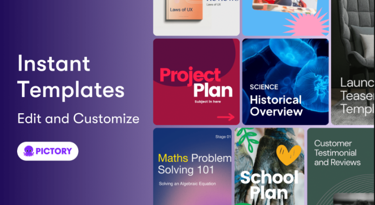 Whether you’re producing marketing videos, social media content, training materials, or presentations, design can be one of the biggest time sinks in the creative process. Instant Templates remove that barrier by giving you ready-to-use designs right inside your Pictory dashboard.