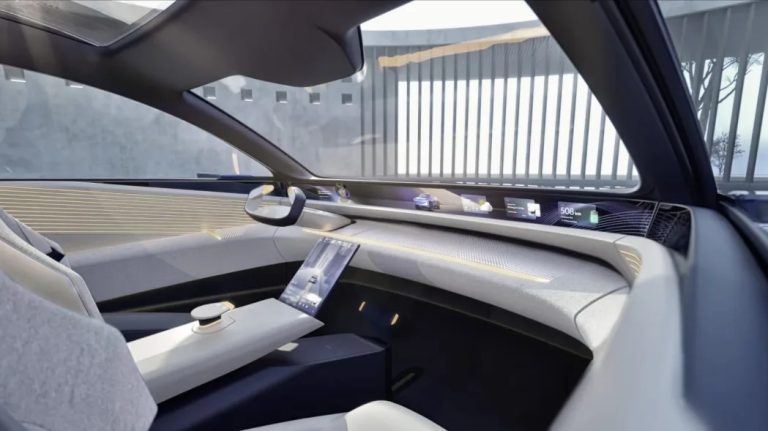 Its windows are “Smart Windows” and are actually semi-transparent displays. An avatar pops up on the exterior as you approach the car to provide you with information and a welcome. For example, if it’s going to rain soon, your avatar will remind you to grab an umbrella before you hop in the car. That same avatar is used inside the car as a projection of sorts that pops out of the center console, allowing you to interact and talk with it.
